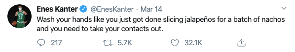 坎特在呼籲大家注意防護的同時, 還把自己的頭像加上了口罩。