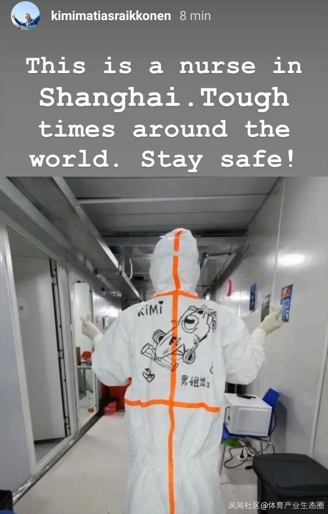 對了,此前上海一位醫護人員因為是萊科寧的車迷,把偶像的賽車畫在了防護服上。沒想着這一照片被後者親自轉發,並送上了祝福。