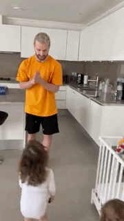 特略和女兒玩起了小朋友之間的遊戲。別説,這套動作,你現在能做利索嗎?