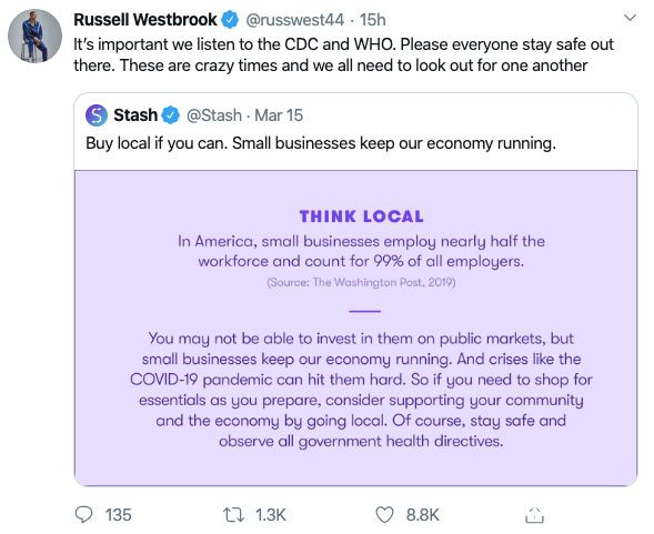 此外,哈登、威少、塔圖姆、奧拉迪波、普拉姆利等球星,都紛紛呼籲大家聽從WHO建議,待在家中、做好隔離防護。