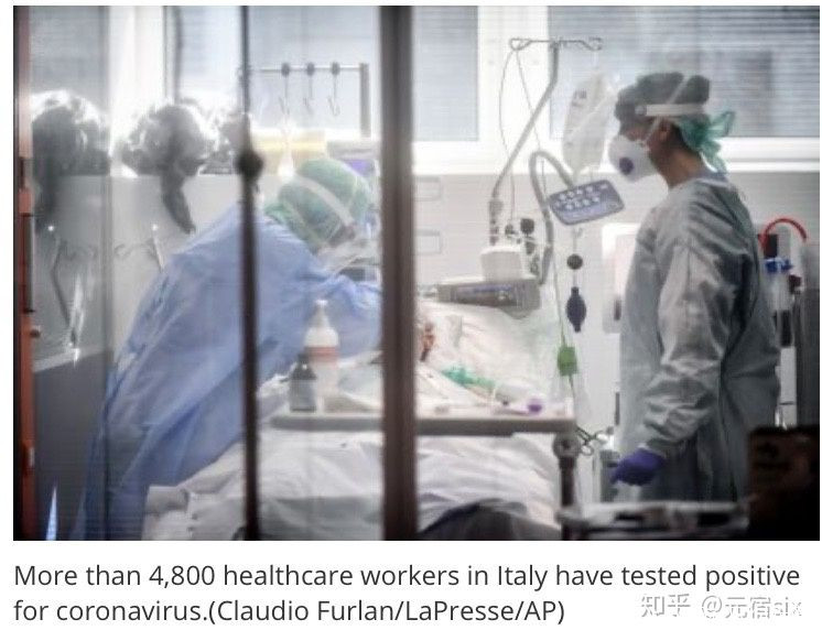 目前,據意大利國家衞生研究所(National Health Institute)的數據,意大利逾4,800名醫護人員的冠狀病毒檢測呈陽性,約佔該國病例總數約9%。