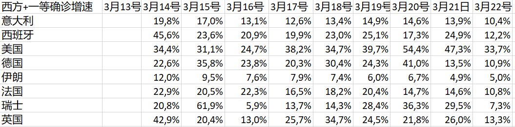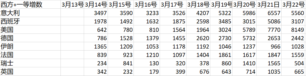 可以十分高興地告訴各位的是,西方的疫情,已經有了第一批略微好轉的跡象。至少是沒有加速惡化。當然今天才是看到這類跡象的第一天,還不能肯定這種放緩或改善能否持續下去。