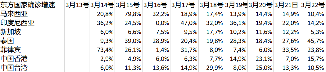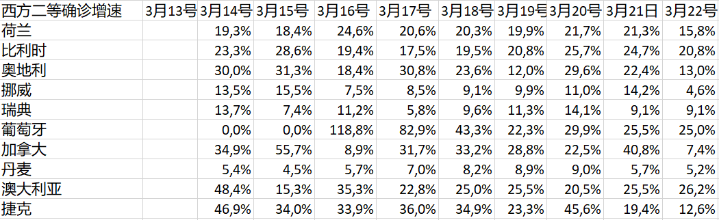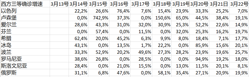 第三梯隊的十支隊伍情形類似。速度還在18%以上的,即繼續瘋狂增長的隊伍還有六支。這個數目,昨天是七支,前天是九支。大前天是六支。也就是説,前天可能是峯值。已經開始下降兩天。希望這個趨勢繼續。