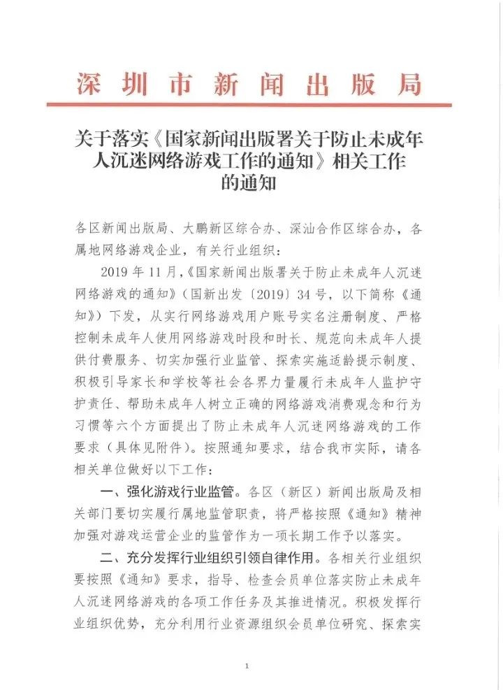 3月18日,OPPO宣佈上線未成年人防沉迷遊戲系統,對未成年人用户付費進行嚴格管控。同一天深圳市新聞出版局發出的一份《關於防止未成年人沉迷網絡遊戲工作的通知》在業內流傳,該《通知》要求深圳市當地遊戲企業落實實名註冊,控制未成年人時長、限制消費等具體任務。並於3月30日前提交工作報告。