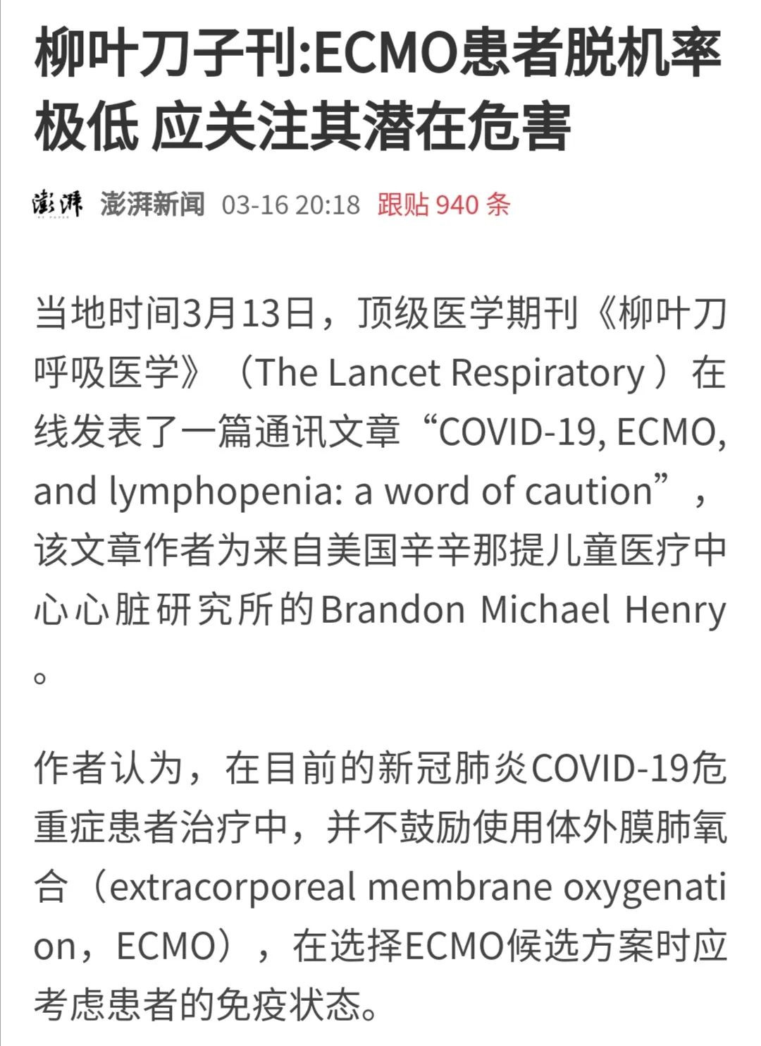 早期的病人,可能根本不需要ECMO就可以康復,何必冒這麼大的風險,花這麼大的代價上ECMO呢?