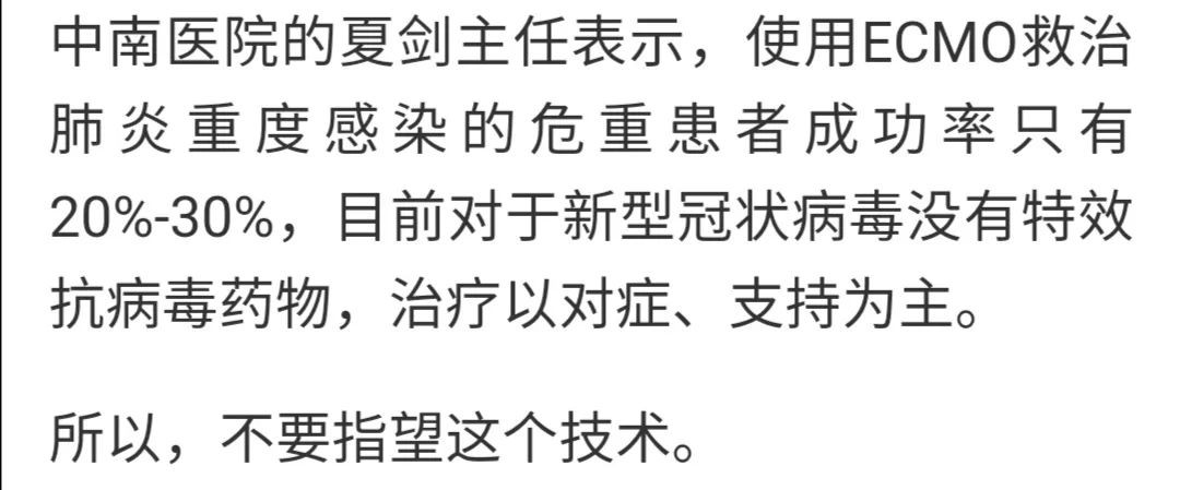 到目前為止,武漢使用ECMO救治新型冠狀病毒肺炎重症病人,成功率可能只有5%。