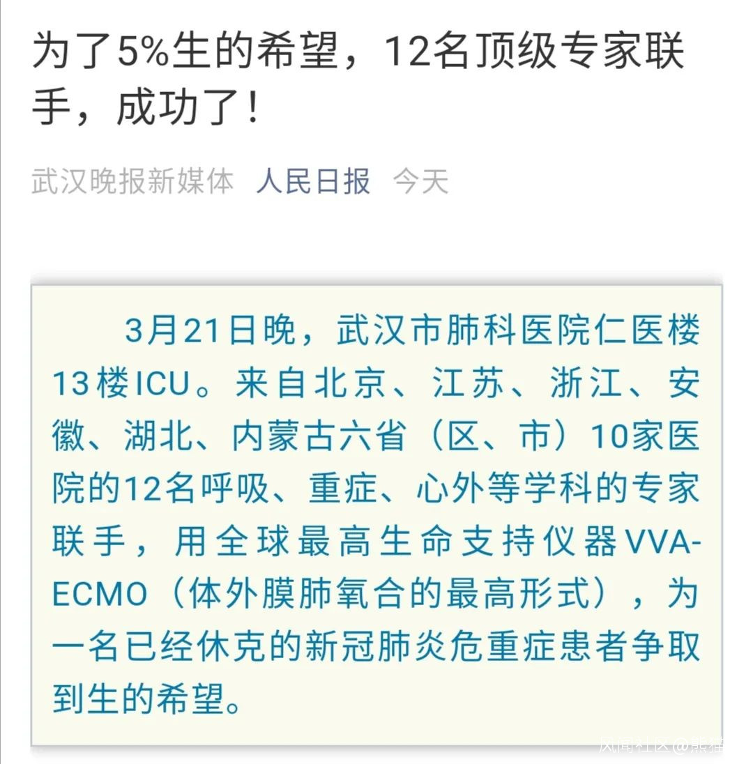 我們看上面新聞的標題,為了5%的希望,12名頂級專家聯手,ECMO終於救回一人。