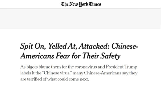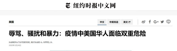 《紐約時報》稱,隨着新冠病毒攪亂了美國人的生活,美國華人面臨着雙重危險。