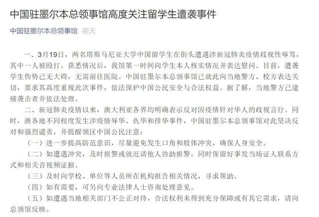 ▲中國駐墨爾本總領館的聲明(圖/網絡)