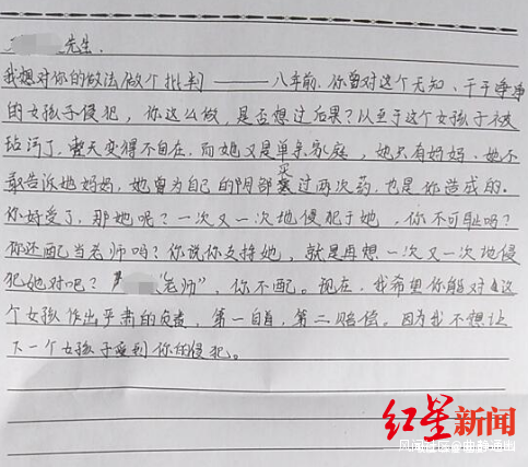 性侵發生後,女孩最初不懂,不知道老師對她做的事有多麼惡劣,就連她的同學們也“以為老師很寵她,都很羨慕她”;小趙並非沒有求救過,二年級時,有一次媽媽從廣東打工回來,她曾告訴媽媽“下面痛”,但沒追問緣由的母親只給她買了消炎藥,第二天就回廣東打工去了;直到小趙上了初中,學了生理衞生課後,才知道當年鄧某長對自己做的事情是“非常不好的事”,她才寫下了那封如今讓當年往事浮出水面的信,可她也沒有勇氣把信寄出。