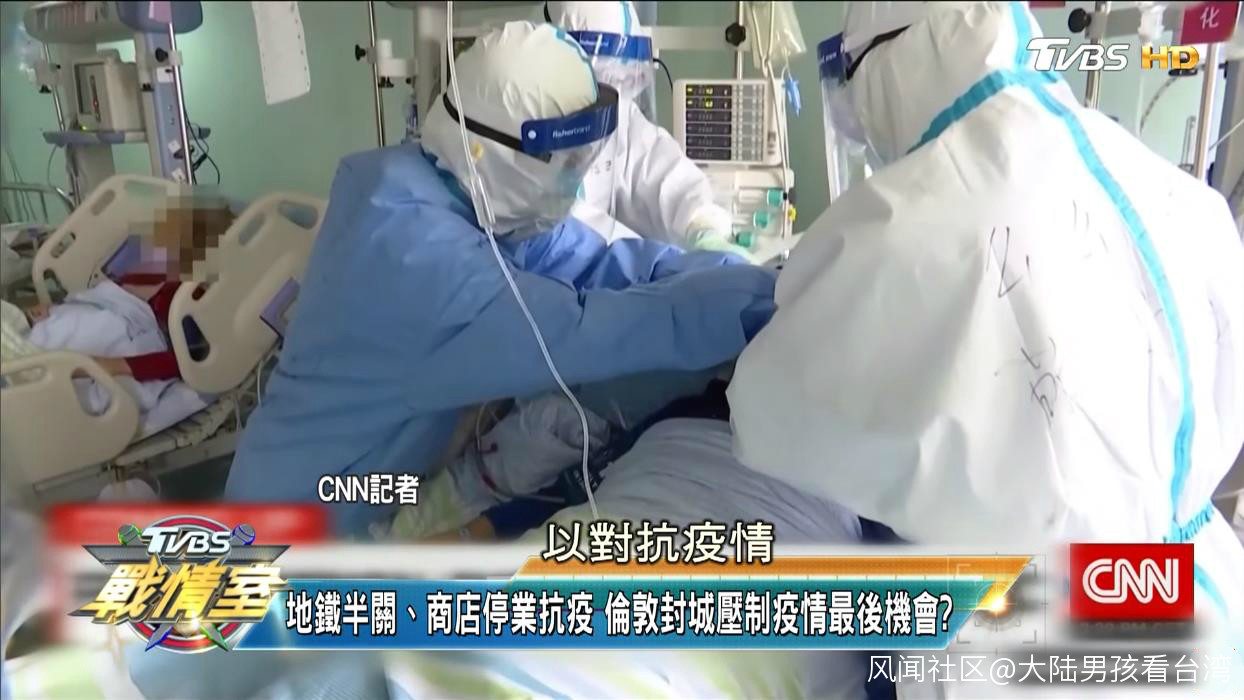 3月22日晚,島內電視台TVBS主打、趙少康主持的政論節目《週末戰情室》討論歐洲各國的防疫情況,其中有一段插播了美國媒體CNN關於英國倫敦的視頻報道。