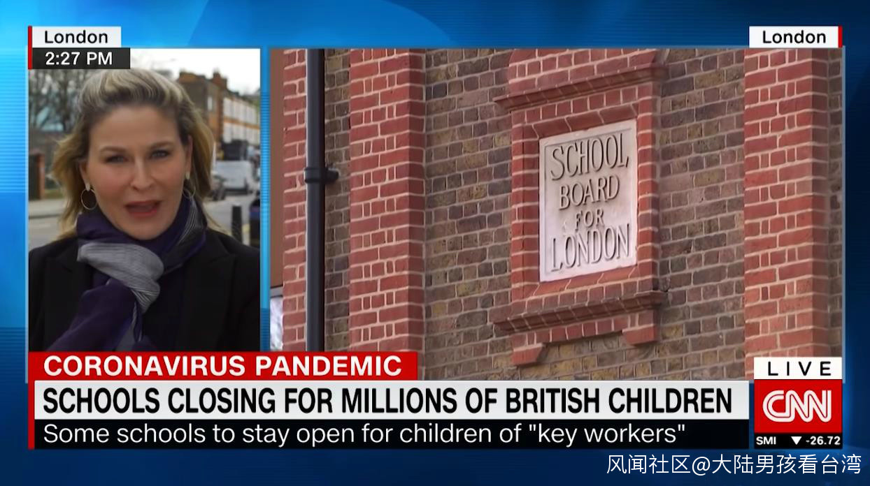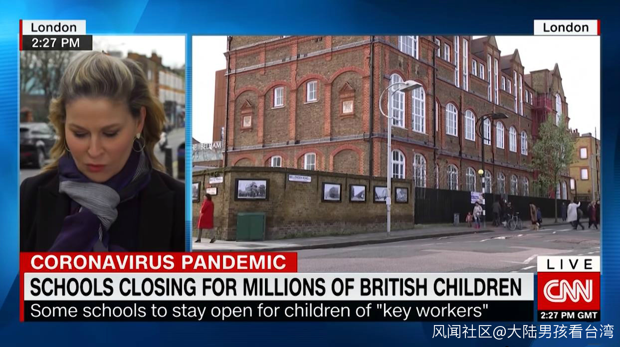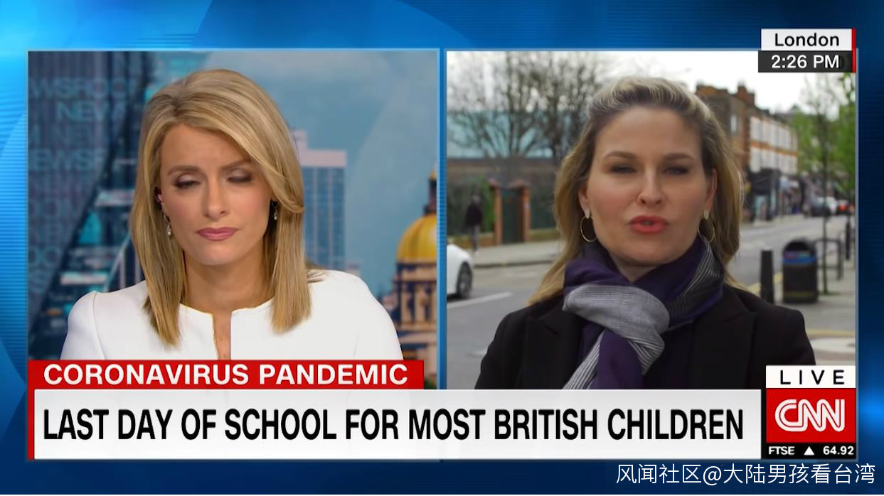 視頻報道中,CNN駐倫敦的記者大致介紹了英國政府當前採取的防控措施。