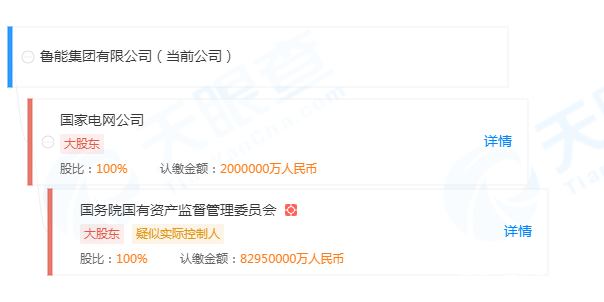 天眼查顯示,魯能集團是國家電網的全資子公司。其核心業務為地產、能源兩大板塊。