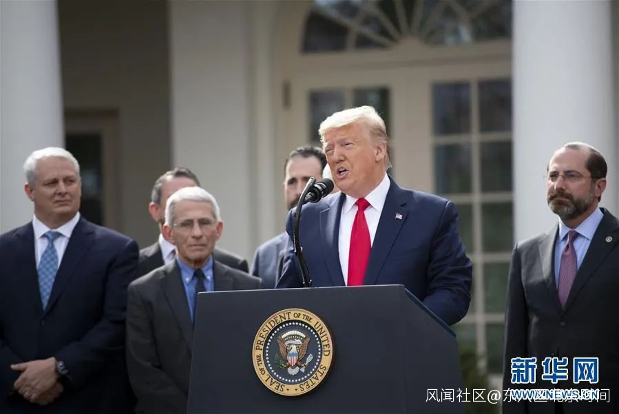 3月13日,美國總統特朗普(前)在華盛頓白宮的記者會上講話。新華社記者 劉傑 攝