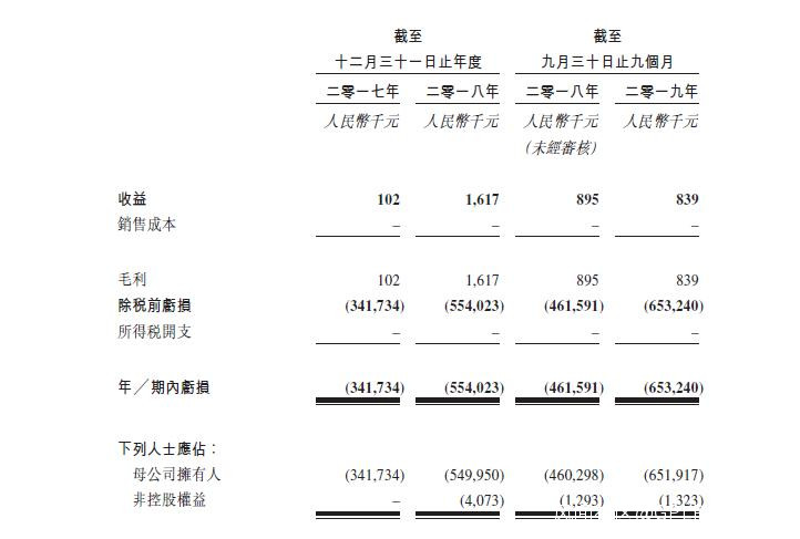 根據諾誠健華的招股書,2017年和2018年,營收僅為10.2萬元和161.7萬元,而淨虧損高達3.42億元和5.54億元。