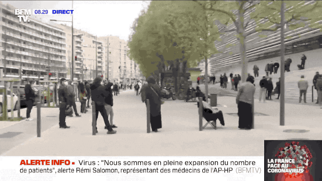 醫護人員懇求法國人遵守「戒嚴」措施。法國總統馬克龍在一封公開信中表示,「呆在家裏是唯一防止人們互相感染的方法」。
