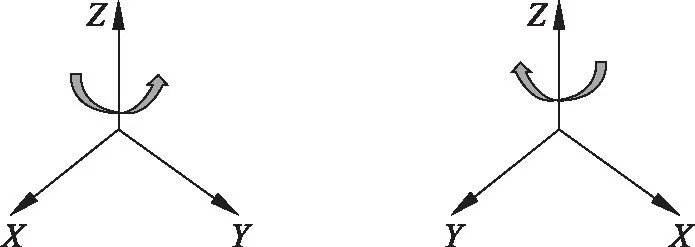 圖2展示空間翻轉變換的示意圖。左圖xyz軸滿足右手螺旋準則,右圖xyz軸滿足的則是左手螺旋準則。不能通過連續變換,把左圖變為右圖,只有做鏡像變換才可以做到。類似於此,我們可以把各種基本粒子的量子場定義左手粒子和右手粒子。實驗發現,弱相互作用中左右手粒子相互作用是不一樣的。換句話説,在弱相互作用下,宇稱不是守恆量子數。當然這裏面的情況會非常複雜,因為左右手還可以有一個連續變換來定義。比如粒子自旋方向由粒子運動方向之間的關係也可以定義左旋粒子和右旋粒子。這種定義被稱為螺旋度。對於無質量粒子,螺旋度是確定的。而有質量粒子,只能存在近似的螺旋度。因為如果存在質量的話,總是可以存在洛倫茲變換改變動量的方向。