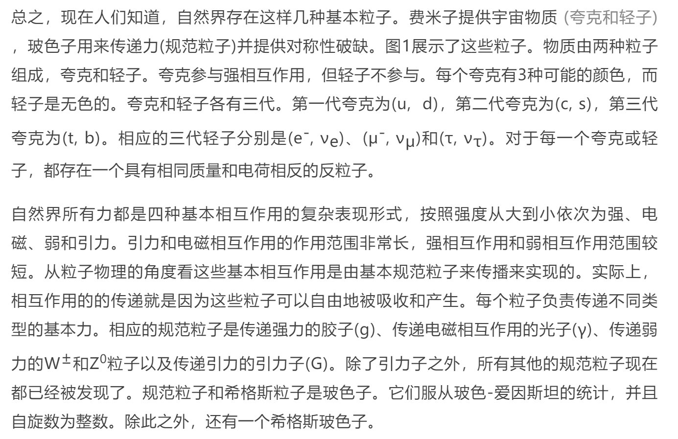 需要説明的是,粒子物理標準模型是物理學家經過了長期的探索才得到的。其中既有奇妙的物理思想,又有大量的實驗探測。失敗與挫折充斥了整個探索過程。而作為理論的簡介,論文並不是想做一個高能物理發展歷史的綜述,所以主要內容是討論怎麼理解現在已經成為高能物理理論基礎的粒子物理標準模型。