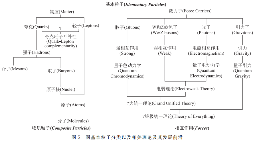 圖5顯示了基本粒子的分類以及相關物理理論及其發展前沿**[28****]**,讀者可以閲讀相關文獻以瞭解更多的內容。