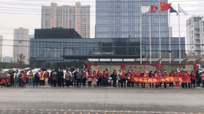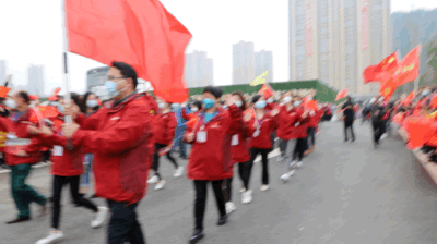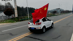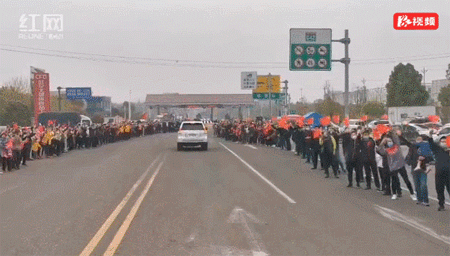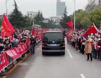 ▲黃岡市民揮舞國旗送別湖南醫療隊