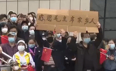 ▲黃岡市民舉牌:感恩毛主席家鄉人