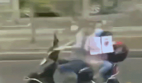 ▲黃岡父女倆騎着摩托車一路追隨,女孩手中是畫給湖南醫療隊的祝福。
