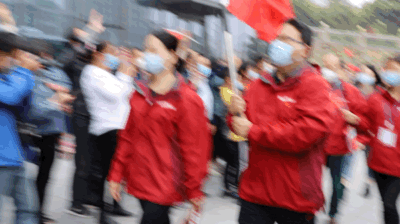 ▲黃岡市民揮舞國旗送別湖南醫療隊