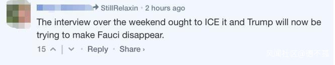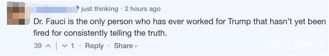 這篇報道在網絡上得到大量轉發和點贊,然而不少網友表示非常擔心福西的前景,是否因為説了大實話而被特朗普“送下台”。