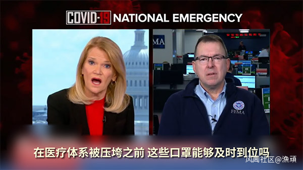 3月21日,白宮在新聞發佈會上宣佈已訂購6億個N-95型口罩以供醫護人員使用,然而未就何時這些口罩能夠到位作出回應。次日,美聯邦緊急措施署署長彼得·蓋納在接受美國廣播公司(ABC)採訪時,再次遭受“靈魂拷問”。可是,無論主持人怎麼追問,這位美國高官卻始終迴避問題,説起“車軲轆話”。