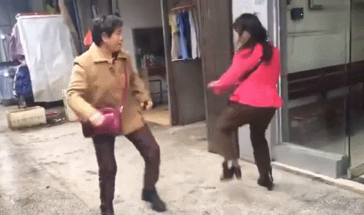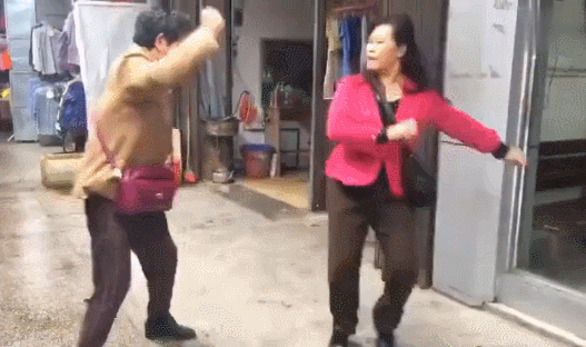 大媽與大媽打架,頗有一絲“神仙打架”的韻味,雖然是“笨拙”的。