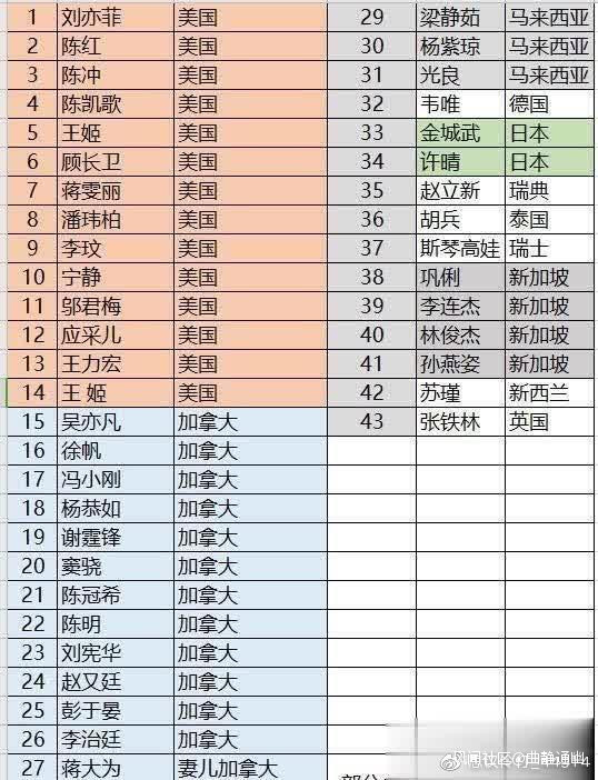 其中,蔣雯麗顧長衞夫婦被標註了美國國籍。