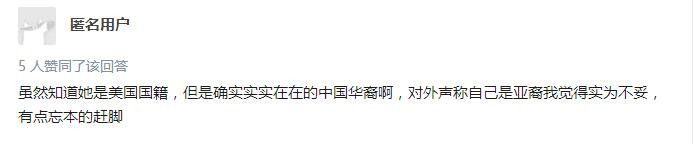 不過也有人認為,劉亦菲説自己是亞裔才是聰明的。因為本來黃種人在美國就容易被歧視,還搞“亞裔細分法案”,亞裔就應該團結起來,無論是華裔、韓裔還是日裔。