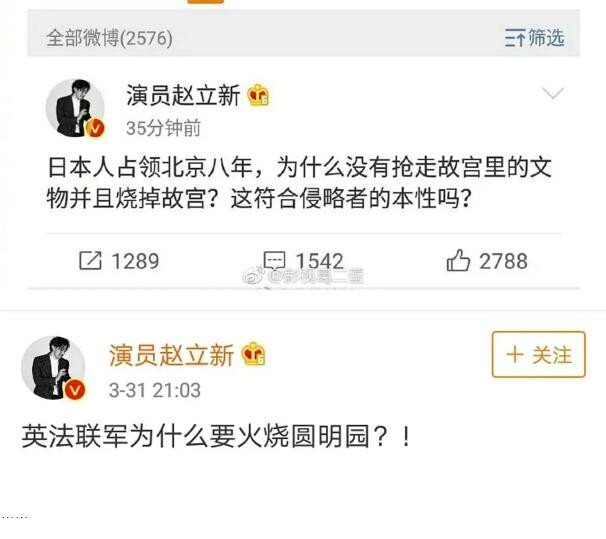 早前還在微博上凹“知識分子”人設翻車,問出“日本人佔領北京八年,為什麼沒有搶走故宮裏的文物並且燒掉故宮?這符合侵略者的本性嗎”這樣的問題。