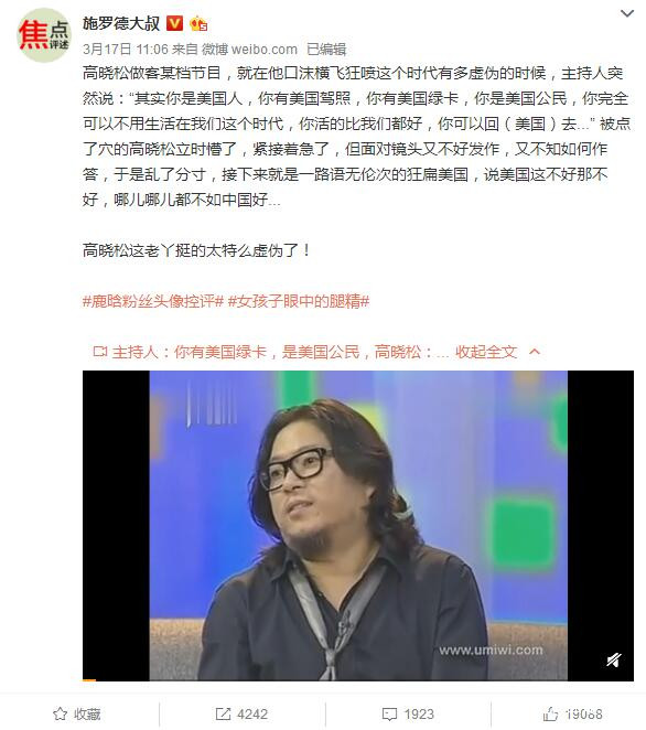 其實國籍問題一直圍繞着高曉松。早在2011年,他因醉駕被捕時,就有媒體報道稱其“出示外國護照”。
