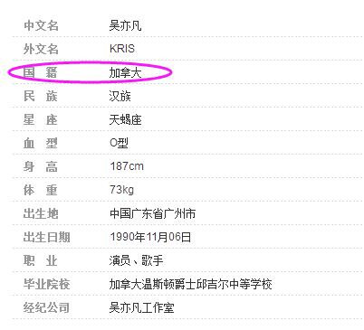 同樣是外國國籍的吳亦凡,他10歲移民加拿大温哥華,是加拿大籍人。