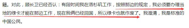 對此,夫妻二人都回應否認。顧長衞回應稱,自己有段時間在洛杉磯工作,按照當地規定,必須辦理當地綠卡才能工作,之後他和蔣雯麗回國,綠卡也因此作廢。