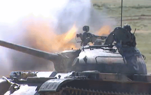 59式坦克可裝載炮彈30餘枚,12.7毫米高機彈500發,7.62毫米機槍彈3000發,在作戰中,炮彈都要留給最有價值的目標,對付散兵遊勇這樣的“弱雞”,一般高機和59式並列機槍的威力和射程足夠招呼。
