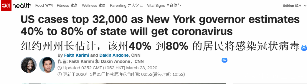 紐約州州長安德魯 · 庫默23日估計,全州可能有40%—80%的居民感染新冠病毒。如果真如他所説,以紐約州2000萬居民計算,意味着800—1600萬病人,意味着美國已經向病毒繳械投降、只能靠“集體免疫”來“優勝劣汰”,意味着活生生的人間地獄。延伸閲讀本號原創深度分析《無路可走——紐約,下一個武漢?》