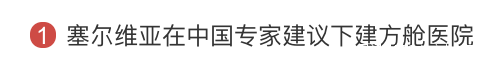 3月24日塞爾維亞國防部表示,在中國專家組建議下,塞爾維亞開始着手把首都貝爾格萊德會展中心改建為一座方艙醫院,用於收治新冠肺炎患者。