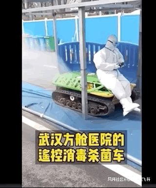 “小坦克”一邊行駛一邊均勻地噴灑消毒液