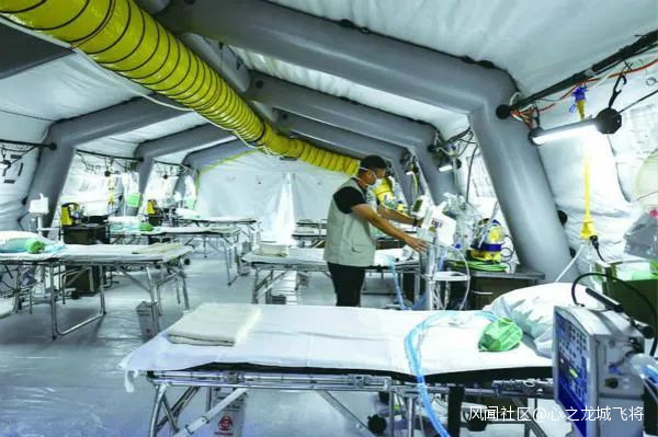 這種用充氣帳篷臨時搭設而成“方艙醫院”,一天之內就能搭設完畢,在帳篷內引入各種治療設備後,這些臨時醫院便可交付使用。帳篷內具備一定的保温功能,內部還設有用電插座,一般一個帳篷內可以容納4個病人同時隔離,醫護人員出入帳篷前都會進行消毒工作。