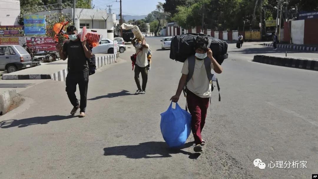 2020年3月22日因冠狀病毒疫情印度學生從北方邦返回到達查謨火車站