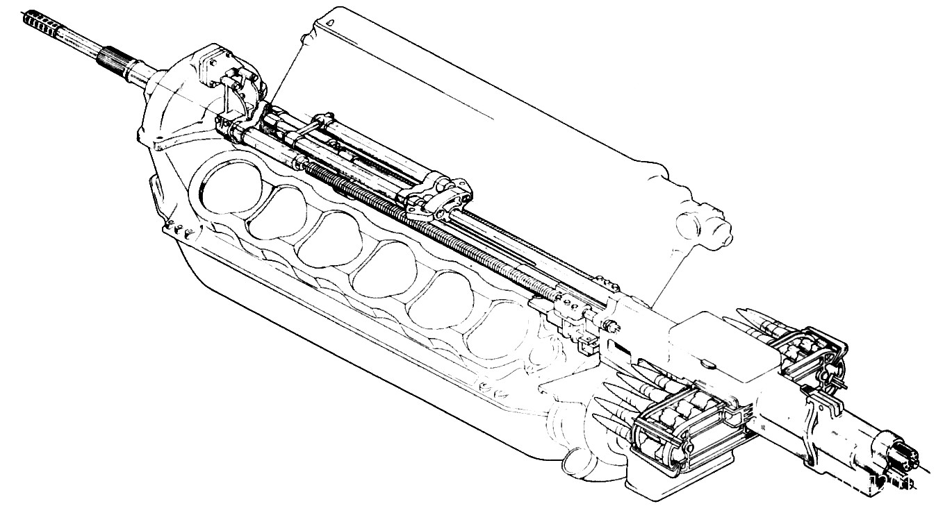 軸炮是穿過傳動軸,而不是曲軸。