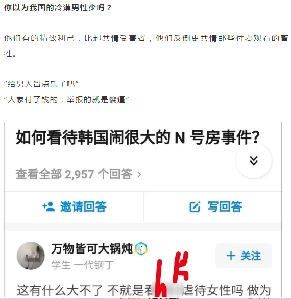 恕我直言,大多數人瞭解N號房這件事也有一個過程——從事情爆發到現在,大家接觸到這件事是有一個過程德循序和時間的先後的。不排除很多人,不知道這件事。