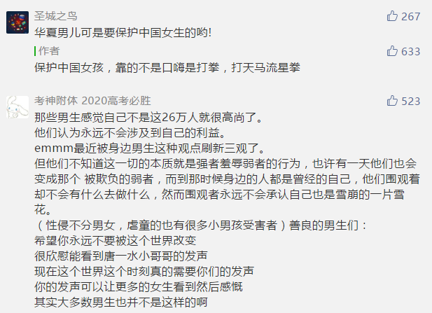 寫文章的作者,呼籲中國男孩子為自己發聲,還不如寫點普及PUA的文章,或者我以小人之人揣度一下,不要自己也淪為一個PUA或者物化女性的人還好——至少在寫對受害女性的同情文章的時候,把文章打賞和小廣告關掉了吧?