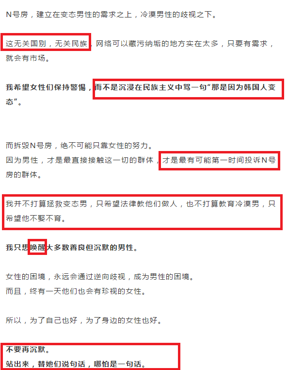 第二步,”虧總民“:受害的永遠是女性。那些沉默的男性(很多時候其實是不知情的男性)就是幫兇,底層邏輯是沒有買賣(沒有人觀看),就沒有傷害(N號房事件)。