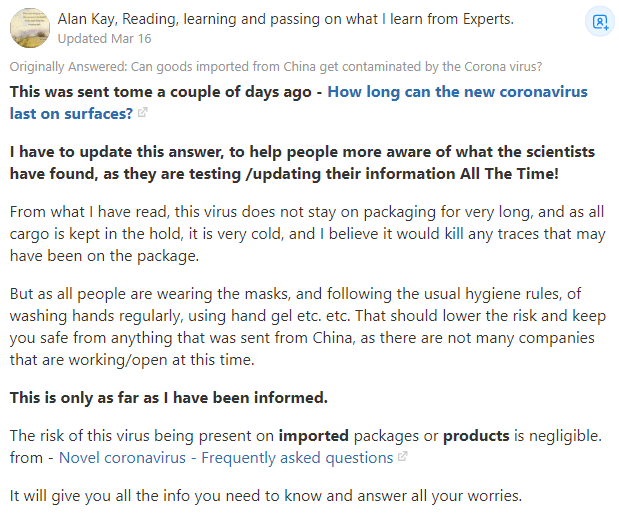 而且所有人都戴着口罩,並遵循通常的衞生規則,定期洗手、使用護手膠等,這應該會降低風險,讓你免受從中國寄來的任何東西的傷害,而且此時工作/開業的公司並不多。