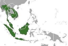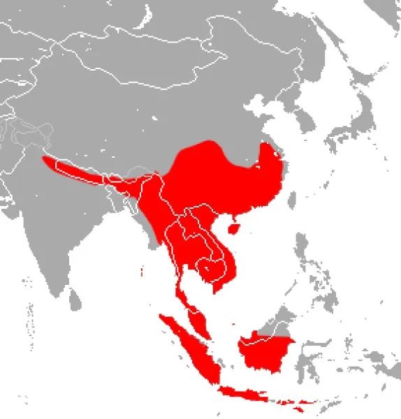 馬來穿山甲(Manis javanica)地理分佈。圖源:https://www.wikiwand.com/en/Sunda_pangolin
