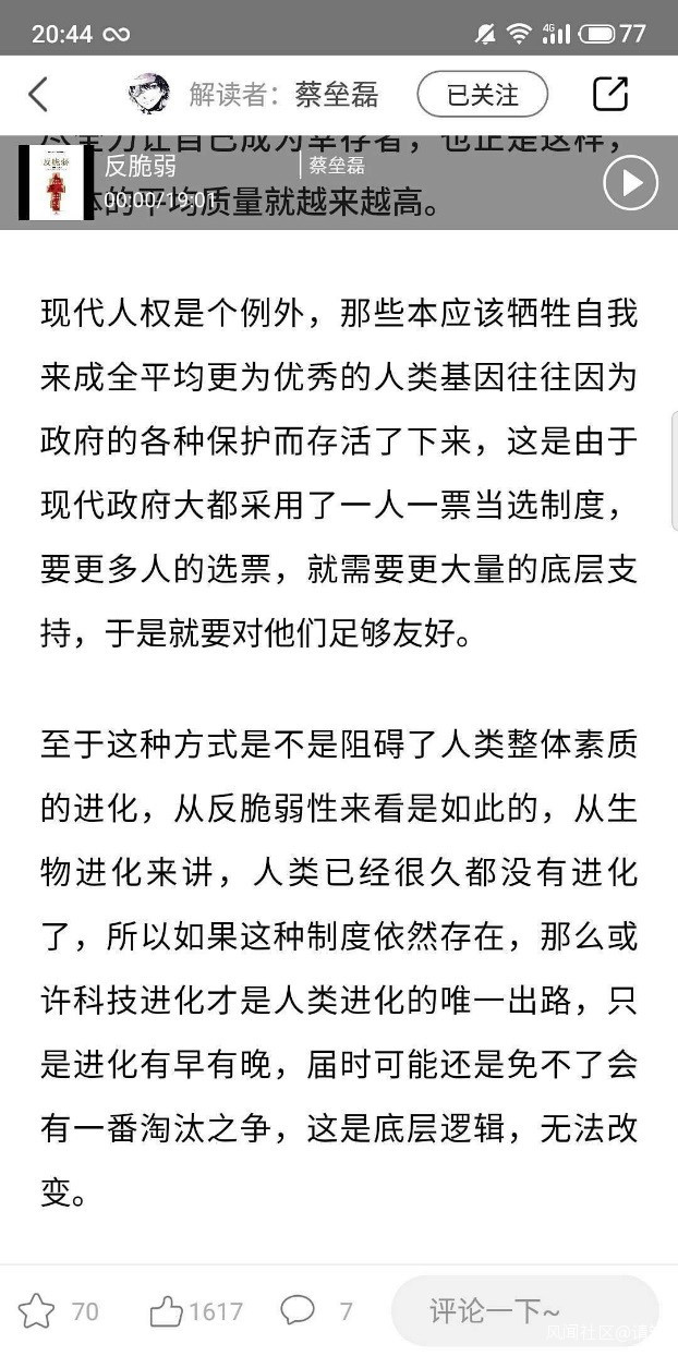 蔡叔,讀這裏時不是很理解裏面説的如果現代人權制度一直存在,科技進化才是人類進化的唯一出路?”