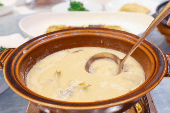 **火鍋可煮萬物,河豚也可。**該怎麼形容河豚煮的火鍋呢?湯汁潔白綿密,魚肉脆嫩,鮮掉舌頭不為過,吃過河豚鍋底,其他鍋底都是將就。